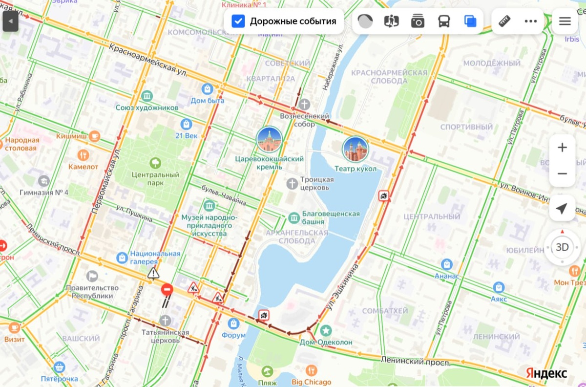 ❗️Внимание, водители! В Йошкар-Оле из-за ремонта дорог перекрыт перекресток Ленинский проспект - Советская. Дорожники проводят работы и на Советской в районе Царевококшайского кремля. Большая загруженность также отмечена на участке улицы Вознесенской, Карла Маркса, Вашской, Первомайской, Комсомольской, Царьградском и Воскресенском проспектах и улице Эшкинина. Рассчитывайте время пути, учитывая пробки и подбирайте варианты объезда.