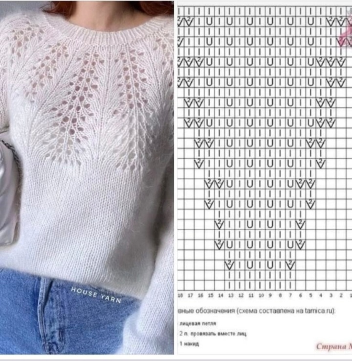 Вяжите ли вы кофточки с круглой кокеткой сверху? Если да , то для вас подборка фото кокеток и схемы узоров к ним. Узор на основе узора ,,павлиний хвост,, Вязание кокеток не сложное , самое главное вязать образцы узоров и расчитывать по плотности вязания. Измерять какой будет вырез по горловине. Измерять окружность груди , руки и учитывать особенности фигуры. Если окружность бёдер гораздо больше окружности груди , то тело изделия , допустим кофточки надо вязать с расширением. Здесь вязание посложнее. Но разобраться можно. Ещё вопрос когда вязать росток? Я бы посоветовала росток вязать после вывязывания узора кокетки если узор продольный. Иначе узор собъется если будете вязать укороченные ряды в процессе вязания узора. Лучше вязать азиатский росток. Он вяжется после разделения петель на тело и рукава по петлям спинки поворотным вязанием. Можно росток вязать укороченными рядами после вывязывания узора , задействуя петли рукавов и переда. Если же узор поперечный то можно росток вязать и