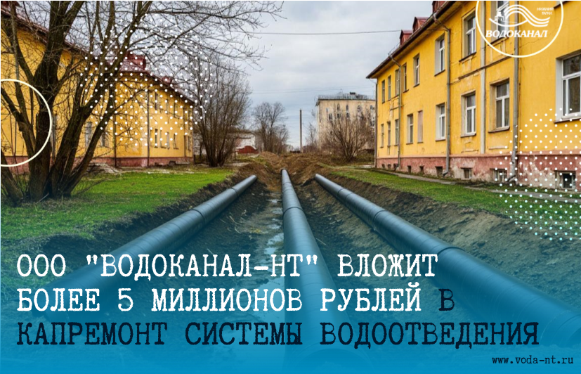 ООО "Водоканал-НТ" вложит более 5 миллионов рублей в капитальный ремонт системы водоотведения в центре города.
