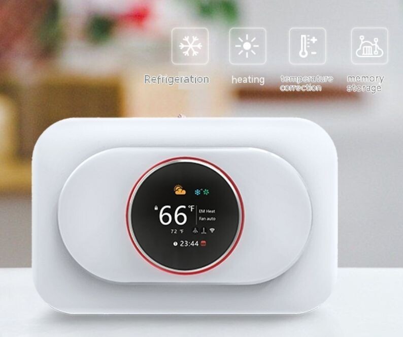 AVATTO WT450. Разработан для систем HVAC 24 В, включая печь, кондиционер (2H/2C), тепловой насос (2H/2C + уровень 2 AUX), котел, PTAC, фанкойл (3 скорости вентилятора), систему только охлаждения и систему отопления. Поставляется с преобразователем C-wire, основанием и задней панелью, что устраняет необходимость в дополнительных покупках. Имеет 10 клеммных колодок и 2 расширяемых порта для бесшовной установки. 5 рабочих режимов включают выключение системы, аварийный обогрев, только охлаждение, только обогрев и автосистему. Автоматический режим плавно переключается между охлаждением и обогревом без ручной регулировки. На экране термостата отображается информация в режиме реального времени, включая погоду, температуру в помещении/на улице, напоминания о необходимости чистки фильтра, время, неделю, текущее состояние, режим системы, режим вентилятора и статус Wi-Fi. 4 различных температурных диапазона каждый день. Автоматически определяет температуру в помещении с точностью до 0,5°C д