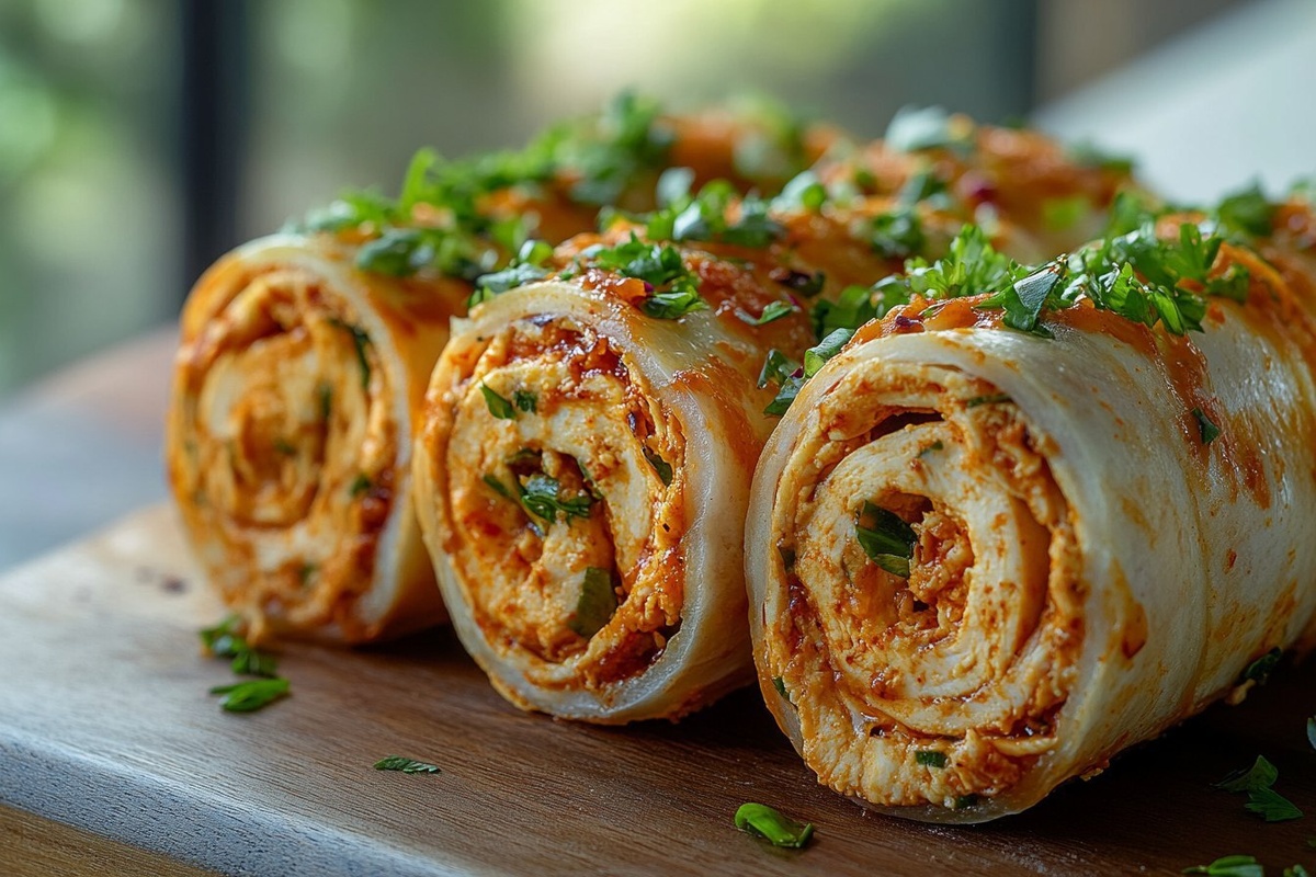 Создано на основе запроса: Title: Spicy Buffalo Chicken Pinwheels | STYLE: Close-up Shot right view | EMOTION: realistic as possible