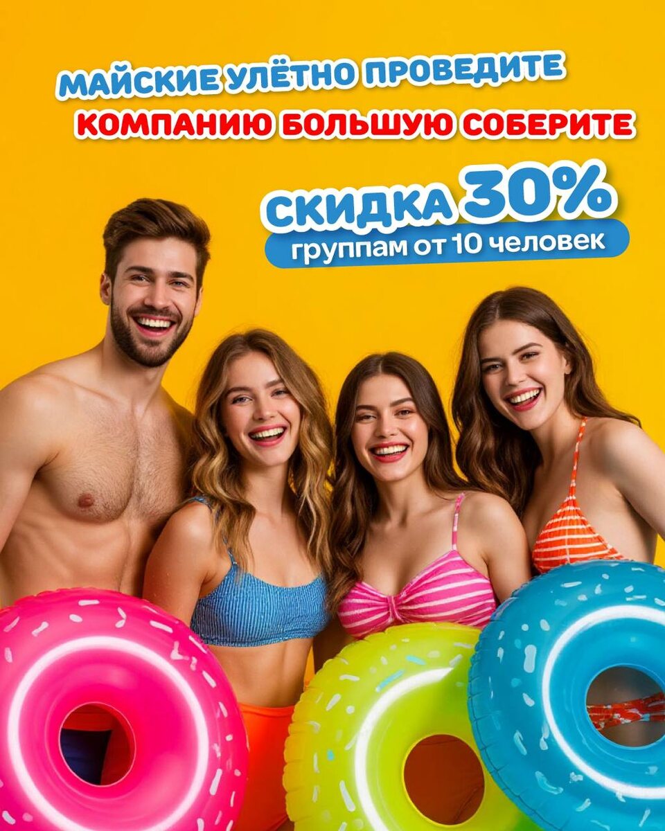 Длинные майские праздники - идеальный повод для долгожданной приятной встречи с друзьями и близкими!🔥 Самое время запланировать улётный отдых - собирайтесь дружной компанией, бронируйте посещение заранее и приезжайте в аквапарк весело отдохнуть! 🤩 Для дружных компаний от 10 человек у нас действуют специальные условия: ✅скидка 30% для групп от 10 человек даже в выходные и праздничные дни ✅индивидуальный инструктаж для вашей компании ✅проход в аквазону без очереди ✅яркие приключения с друзьями ✅возможность заказать вкусный комбо-обед для всей группы на фудкорте аквапарка Выбирайте удобную дату для своей компании и оставляйте заявку на нашем сайте или по телефону: 📞8(8422)240-550 Пусть эти праздники запомнятся вам невероятными впечатлениями, яркими водными приключениями и классным отдыхом! 🏖 #аквапарк #аквапаркульяновск #аквапаркулёт #бассейныульяновск #бассейнульяновск #бассейнподоткрытымнебом #кудасходитьульяновск #водныегоркиульяновск #водныегорки