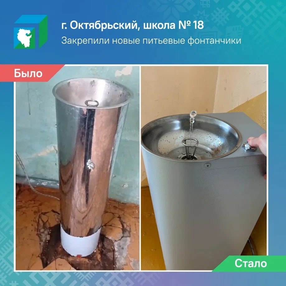 😀😃😄😁 В г. Октябрьском в школе № 18 установили новые питьевые фонтанчики. О том, что они не работают, местный житель сообщил в соцсетях. Робот ЦУР Башкортостана поймал комментарий в феврале 2025 года. Администрация г. Октябрьского взяла обращение в работу. Для решения вопроса запросили информацию у профильных служб. По информации начальника отдела образования администрации г. Октябрьского Роберта Хайдарова, старые нерабочие питьевые фонтанчики демонтировали, а после начали ремонтировать основания под ними. В апреле в школе № 18 г. Октябрьского установили и запустили новые питьевые фонтанчики. В Сибае по ул. Макрушина, 42 и 44 после сообщения жителя в соцсетях заменили перегоревший светильник уличного освещения. Проблему решили оперативно благодаря работе администрации города и сотрудников обслуживающей организации. 💚 ЦУР Башкортостана