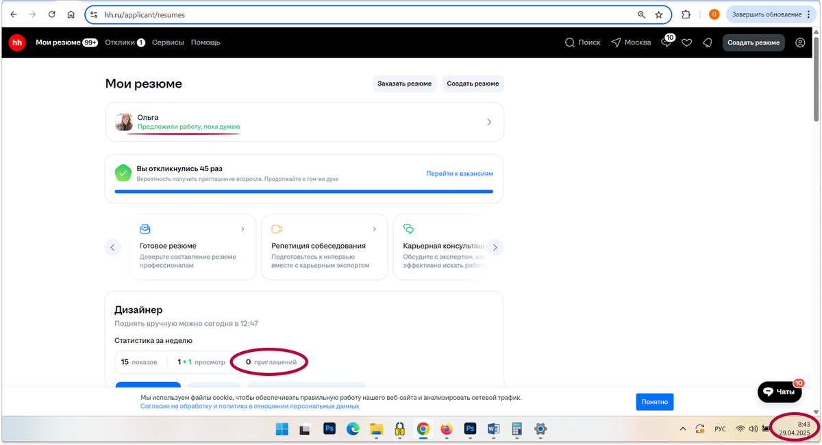 Ну это уже слишком! Ладно бы НН своим функционалом и глюками в вакансиях просто не работал на поиск работы - но он портит! Ровно неделю назад я писала, что, НН, как бы это помягче, не аккуратен в работе со своими сервисами, на основании которых он потом рисует отчеты о том, как у нас все хорошо на рынке труда, прекрасная маркиза. В частности, придумывает иногда приглашения на работу, которых не было. Ну вот сегодня утром иду, как обычно, поднимать резюме, и что вижу? А там снова статус "Пригласили на работу", и я думаю, не пойти ли мне туда! При том, что в данных резюме ниже русским по белому указано, что приглашений 0. Эта шизофрения интерфейса не вселенская катастрофа, конечно, а баг системы. Всего делов - ручками поправить статус и поехали дальше собирать подтверждения, что я все еще никому не нужна. Вот только пока он висел таким, эйчары видели, что меня уже куда-то кто-то позвал", и угадайте сами, как это влияло на решение хотя бы рассмотреть резюме подробнее. "Вот они пусть и з