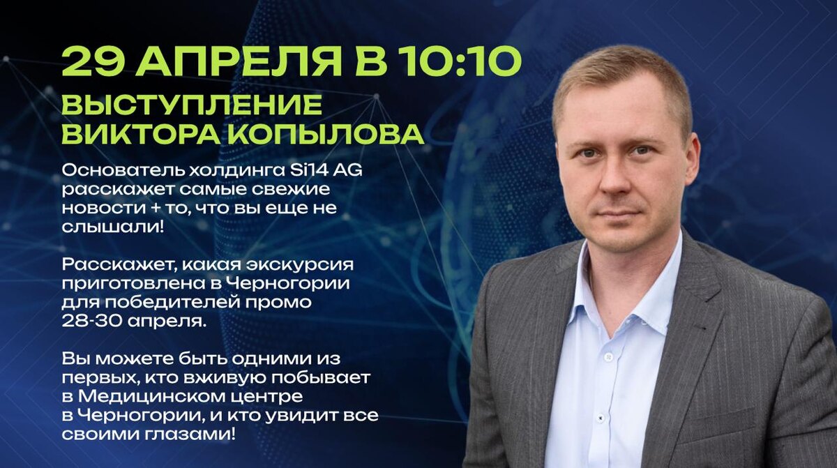 Мы начинаем в 10:10 Мск! 🔸Новости о Банке Si14 🔸Достижения по направлению ФАРМА 🔸Какая программа готовится для тех, кто выиграет поездку в Черногорию Менее чем через час, 10:10 Виктор Копылов расскажет обо всем этом! 🔗 Ссылка на встречу: https://us06web.zoom.us/j/2116731674?pwd=xahqmhZLmGsNMAcfVYG8sNdiNWlLRY.1