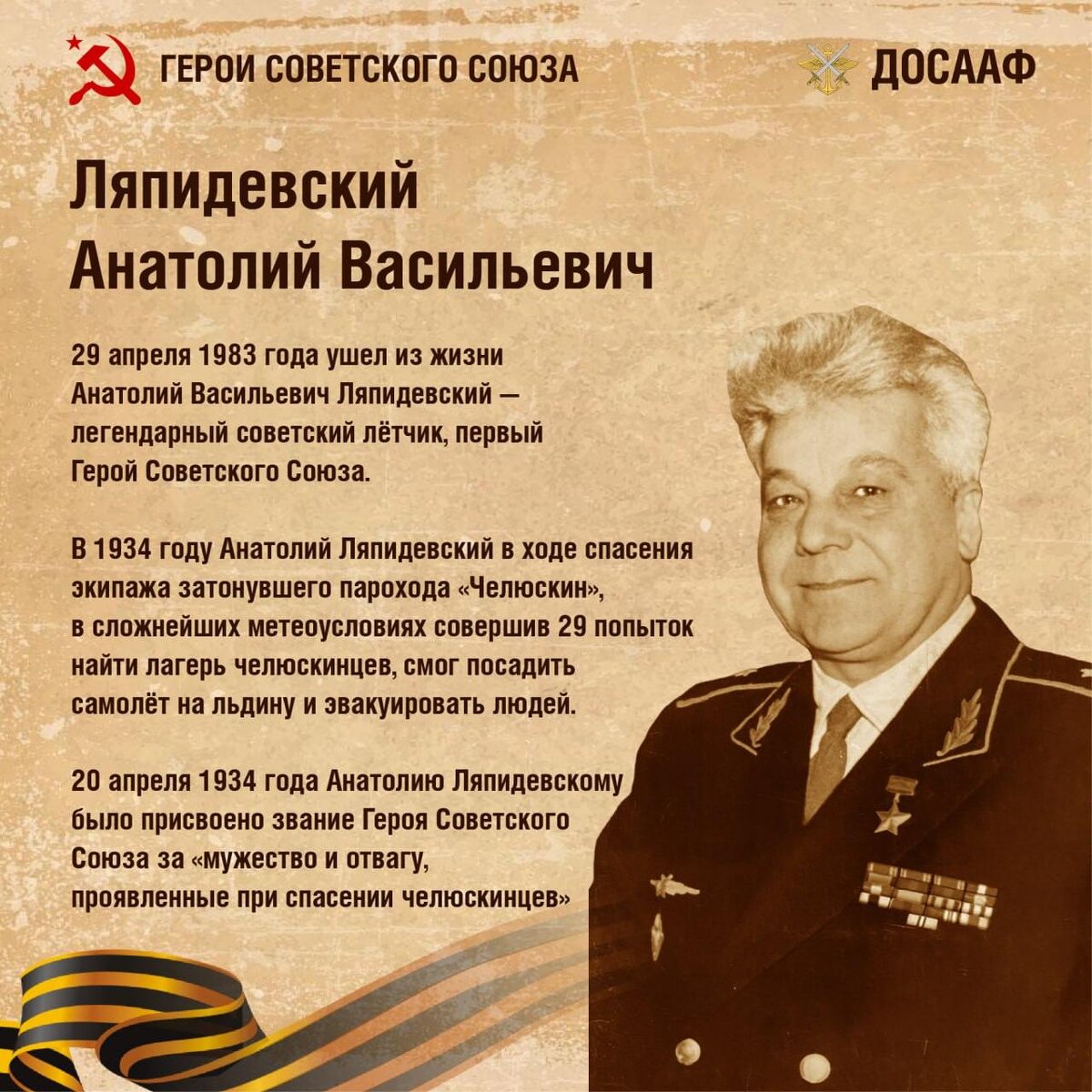 29 апреля 1983 года ушел из жизни Анатолий Васильевич Ляпидевский — легендарный советский лётчик, первый Герой Советского Союза