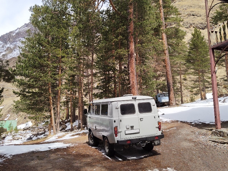 Прям рано-рано утром на гору не пошли. Во-первых хотелось выспаться, так сказать акклиматизироваться на высоте больше 2000 метров, во-вторых все равно весь катальный день мы не осилим. Поэтому степенно встали, позавтракали в Буханке, и выдвинулись в сторону поляны Азау.