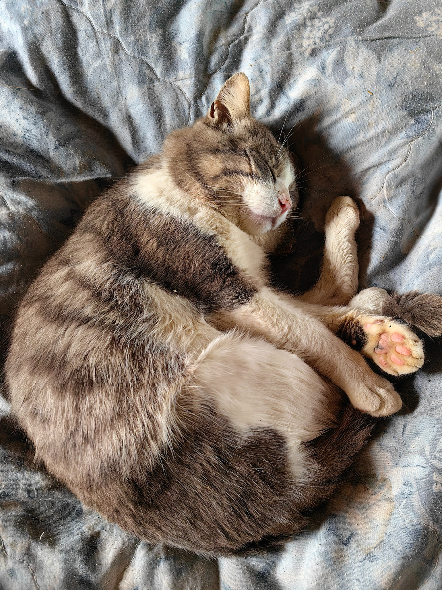 А от Куси осталась дочка Песикот. Это существо ни на что не похожее)))) В детстве она была похожа на помесь собачки и котенка. А все дело в том, что я, не зная что Куся уже беременна, обработала всех, и ее в том числе, от блох и клещей. Это вызвало деформацию скелета плода. И теперь Песикот имеет изломанный короткий крючок вместо хвостика, странно не по-кошачьи разговаривает, нет у нее и пальца на одной лапке. Но в целом это ей никак не мешает жить полноценной жизнью. Ну разговаривает как ежик и тюленька, а так в целом все прекрасно))))
