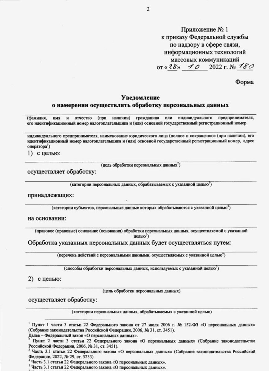 ⭐️ Образец уведомления, который в мае спасет от штрафа в 300 000 рублей До 30 мая 2025 года все компании обязаны подать уведомление в Роскомнадзор. Если не отправить — готовьте кошелек: с мая штраф вырастает с 5000 до 300 000 ₽. ⚡ Когда уведомлять не нужно: — если обрабатываете данные только вручную (бумажные журналы, без компьютеров); — если обрабатываете данные для защиты государства и общественного порядка; — если обрабатываете данные для обеспечения транспортной безопасности. В остальных случаях — уведомление обязательно. 📌 Ознакомьтесь с образцом (ссылка на оф.приказ) — не рискуйте подставить компанию под штраф. @komtaina 🔻НДС🔻ЗСК🔻СУР🔻ИНФО🔻