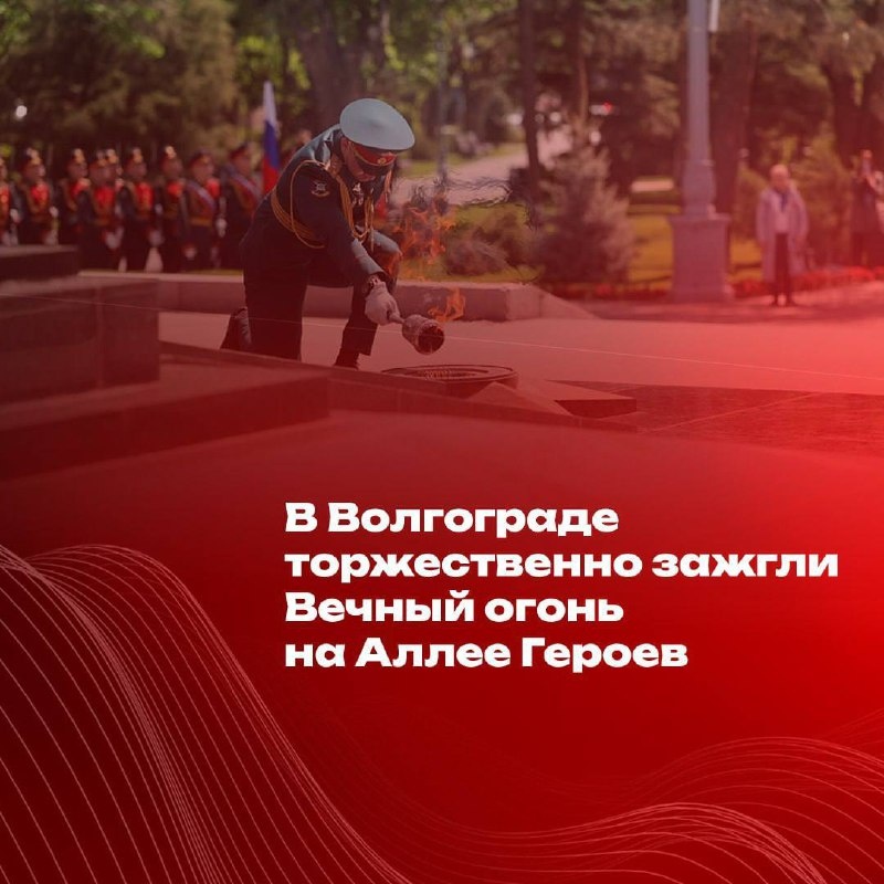 В Волгограде торжественно зажгли Вечный огонь на Аллее Героев Торжественная церемония прошла в рамках международного форума «Великое наследие — общее будущее». Символ памяти вернулся на своё историческое место после масштабной реконструкции мемориала и всей территории вокруг. Почётное право зажечь Вечный огонь получили герои — фронтовик Александр Колотушкин и участник СВО Григорий Лазарев. Вместе с ветеранами, героями и представителями делегаций Вечный огонь зажгли вновь как символ преемственности поколений и вечной памяти о павших. После зажжения прошли минута молчания, возложение цветов, прохождение роты Почетного караула и колокольный звон Собора Александра Невского. Обновлённая Аллея Героев снова стала местом памяти и символом героизма.
