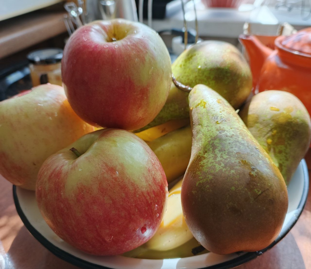 С утра, едва проснувшись - он уже на кухне - таскает яблоки или груши.