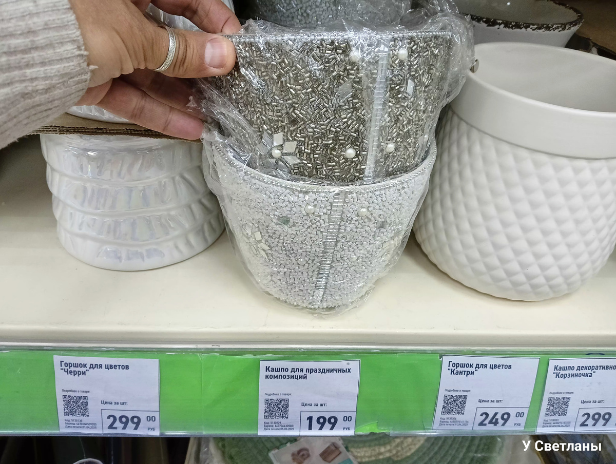 Гуляли, гуляли по Пятигорску и вдруг решили зайти в Фикс-прайс. Где, где, а в Пятигорском Фикс-прайсе мы ещё не были. Магазин огромный, не сравнить с нашим - в Незлобной, да и товара здесь много, различный ассортимент. Кашпо, из блестящего бисера, красивое, но не для живых комнатных цветов, а для композиций. Цена - 199 р. Смотрится, как ручная работа, просто прелесть. Вазон, расцветка интересная, не понятная, но для интерьера оригинальная. Цена - 299 р. Маленькое овальное блюдо, стекло - 390 мл, 79 р. Очень интересненько выглядит. Тарелка десертная - 16,5 см. Цена - 83 р. Стекло, лёгкая на подъём. Очень нежно и красиво смотрится. Треугольный салатник, 11 см, 125 мл. Цена - 87 р. Он с узором, миловидный такой. Пиалка - 200 мл. Цена - 55 р. Форма необычная, листик. Для сервировки стола на праздники самое то. Не большая пиалка - 250 гр. Цена - 49 р. Рисунок - зайки. Есть ещё такая кружка и тарелочка, можно приобрести их, как набор. Кружечка, я приобрела такую, удобная, кофе с неё вкусный