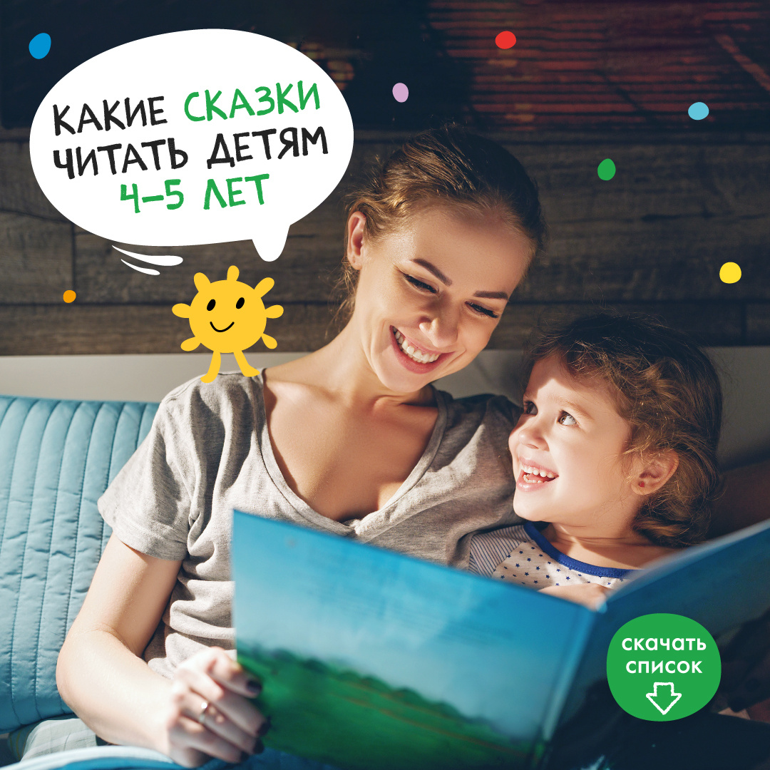Список сказок и рассказов, рекомендованных для возраста 4+, можно скачать прямо здесь. Сохраняйте и наслаждайтесь чтением с детьми!