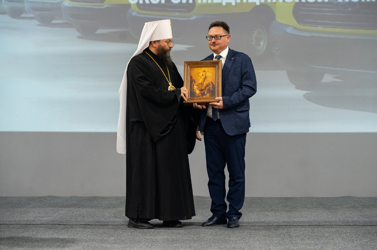 Митрополит Матфей принял участие в мероприятии, посвященном 80-летию Псковской станции скорой медицинской помощи
