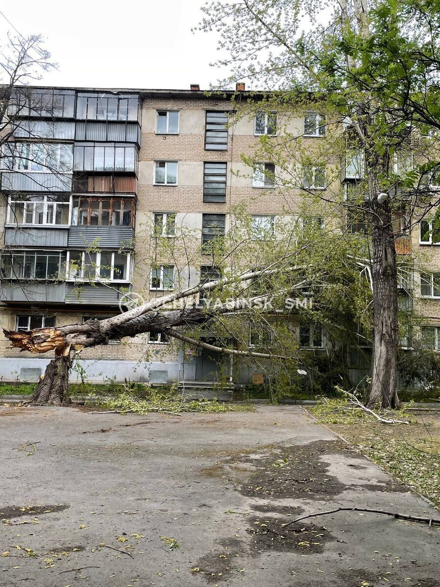 ⚡️🌳 Штормовой ветер уронил дерево, повредив окна и балконы квартир в Челябинске