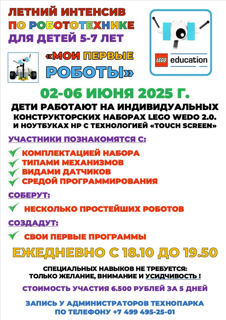 Интенсив по Lego WeDo для детей 5-7 лет.