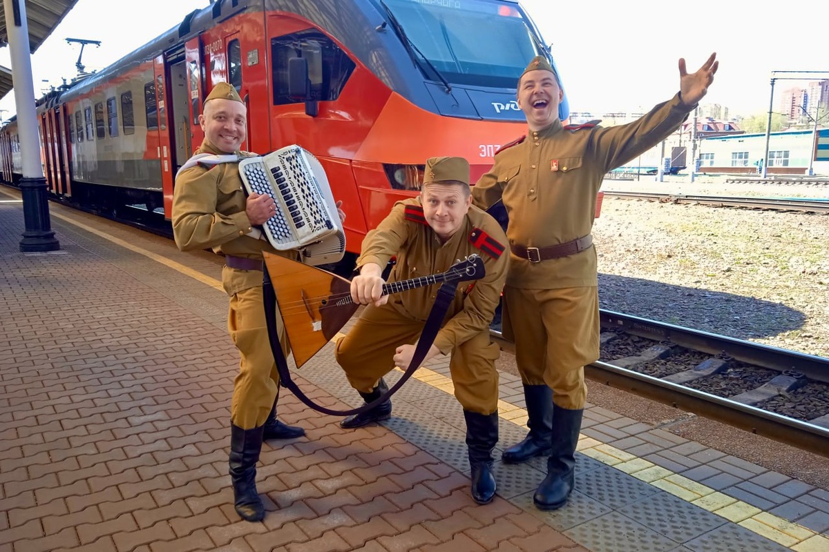 ⭐ На Красноярской железной дороге стартовал фестиваль «Музыка Победы». 🔊 В электропоездах и на железнодорожных вокзалах звучат известные песни военных лет. 🚆 29 апреля для пассажиров электрички Красноярск – Камарчага состоялся необычный концерт. Три солдата в гимнастёрках с гармонью и балалайкой создали атмосферу фронтовых выступлений времён Великой Отечественной войны. Им охотно подпевали пассажиры в вагонах. 🎙 Перед посадкой артисты также выступили в здании вокзала и на перроне, вызвав восторг у пассажиров и гостей города. 🟥 Волонтёры – студенты Красноярского техникума железнодорожного транспорта поддержали праздничное настроение, вручая шоколадные плитки с логотипом празднования 80-летия Победы. Подробный репортаж из музыкальной электрички читайте на нашем сайте. 📱 Читайте нас онлайн, чтобы быть в курсе всех событий: ⏩ Наше сообщество ВКонтакте ⏩ Наш Telegram-канал ⏩ Наш сайт