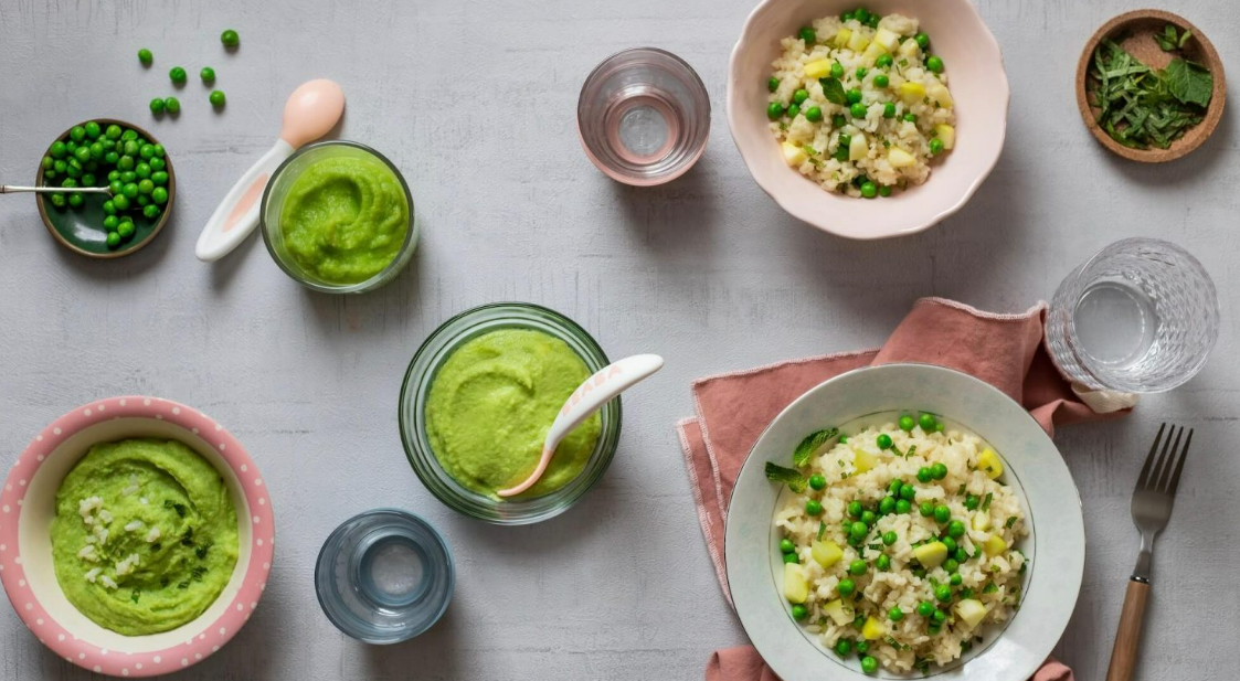Рецепт: Ризотто с кабачками, горохом и мятой для малышей и всей семьи