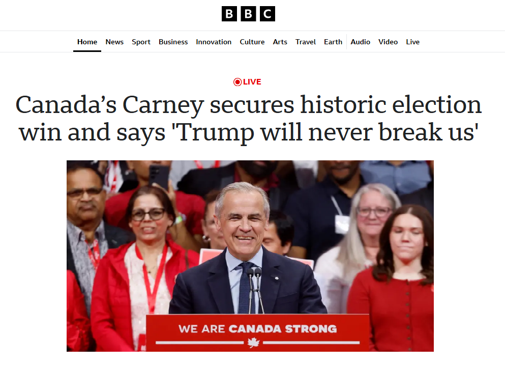 Кстати, заметка опубликована на заглавной странице ВВС - то есть. в США пристально следили за ходом выборов в Канаде. Давайте почтаем, что они пишут: После напряженной борьбы канадцы сделали выбор: Марк Карни останет премьер-министром Громкие аплодисменты раздались в штаб-квартире Либеральной партии после того, как национальный телеканал CBC спрогнозировал победу партии вскоре после закрытия последних избирательных участков в стране. Настроение в штаб-квартире Консервативной партии стало мрачным , поскольку избиратели выразили разочарование и замешательство по поводу результата. В своей речи о признании поражения Пьер Пуальевр сказал, что партия «не совсем пересекла финишную черту» и что «были извлечены тяжелые уроки». Вечер завершился победной речью Карни, которую приветствовала восторженная толпа в Непине, Онтарио. Премьер-министр не раз подчеркивал, что Канада готова бросить вызов США, а президент пригрозил сделать свою страну 51-м штатом. Марк Карни — бывший глава центрального банк