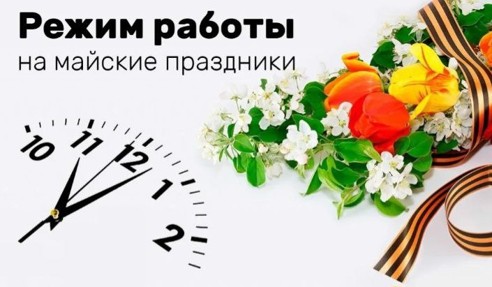 ❗️Друзья! Режим работы в праздничные дни: 1 и 2 мая работаем с 10.00 до 15.00 3 и 4 мая выходной 8 мая работаем с 10.00 до 15.00 9, 10 и 11 мая выходной. С 12 мая в обычном режиме: Пн-пт с 9.30 до 17.00 Сб с 9.30 до 16.00 Вс выходной