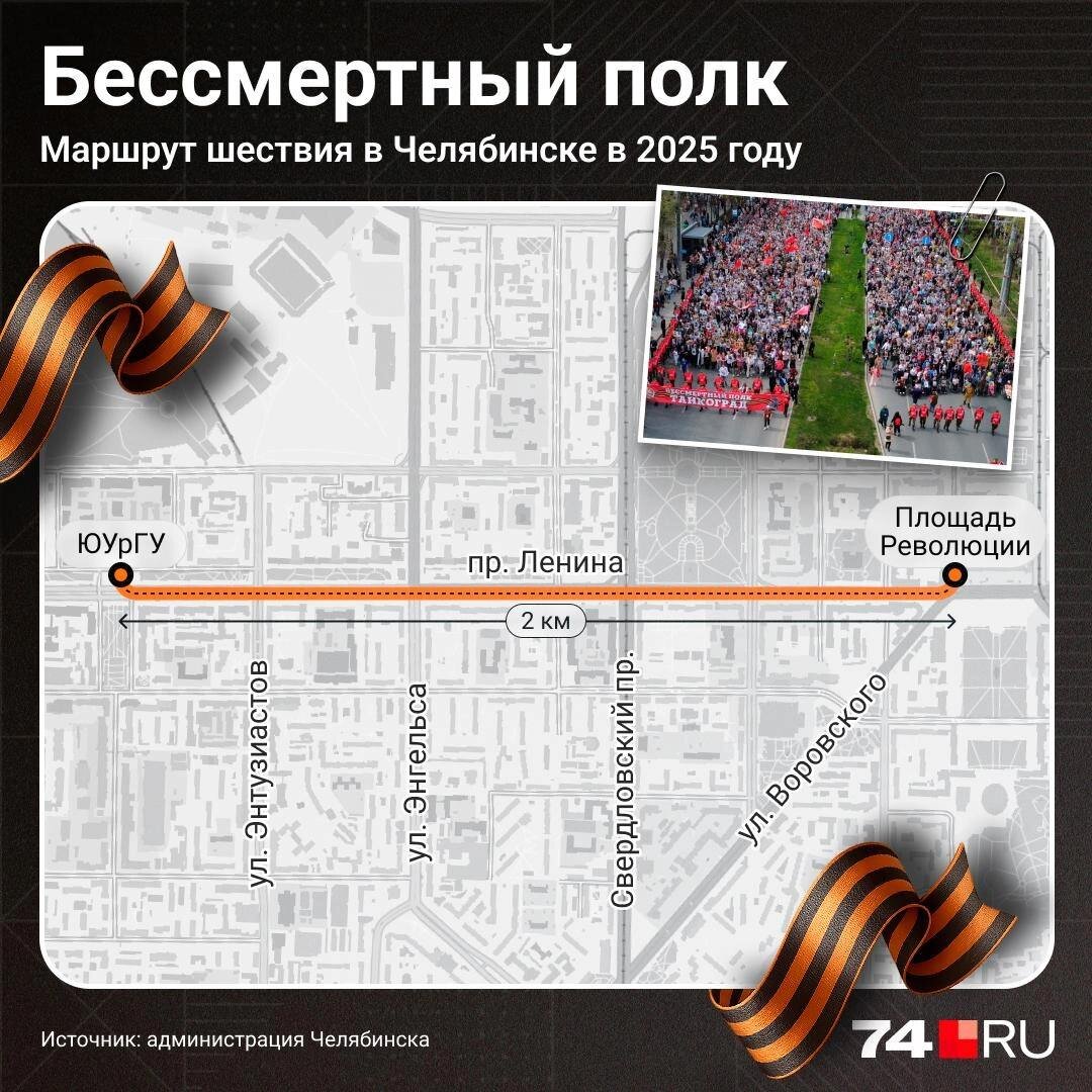 Шествие «Бессмертного полка» пройдет по проспекту Ленина от ЮУрГУ до площади Революции После этого можно будет пройти на Театральную площадь, где будет концерт, выставка военной техники и полевая кухня. А вы примете участие в акции?