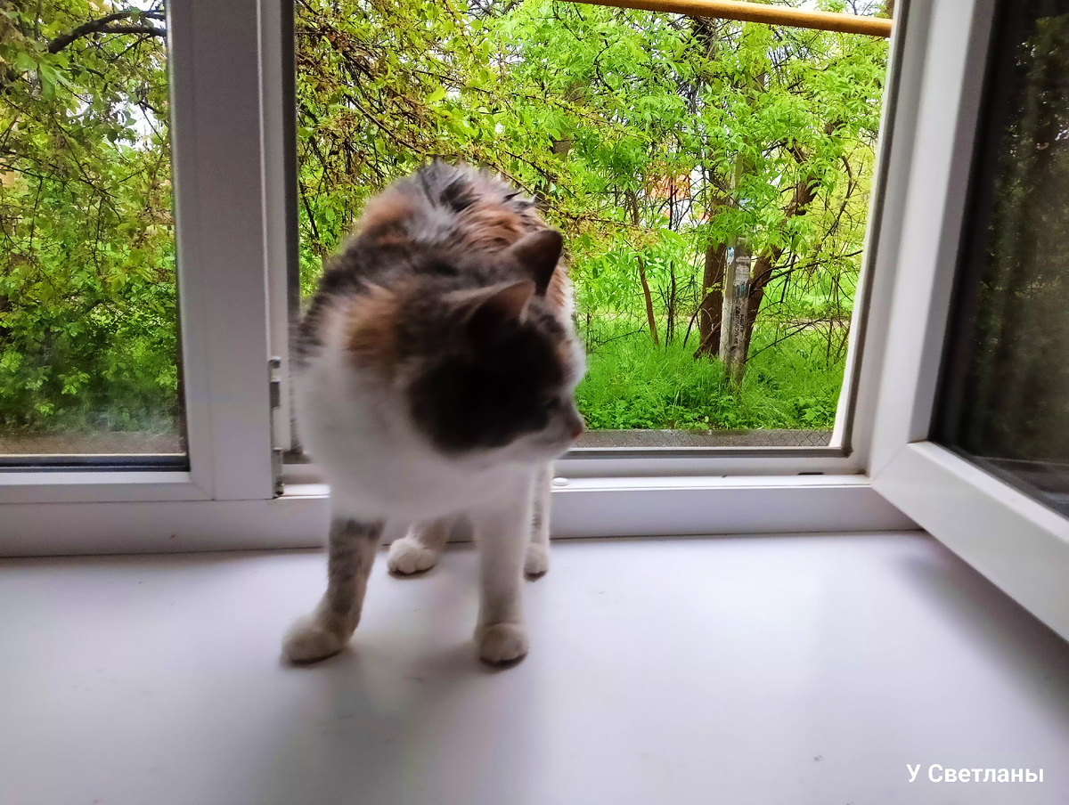 Мокрая. Злая. Явилась, наконец-то. Всю ночь Машутки не было, всю ночь лил дождь. Ночью я плохо спала, потому что переживала за Машеньку, я постоянно открывала окно и звала её, кричала во весь ор, так как дождь заглушал звуки, но Машеньки не было. Слава богу, вернулась, хотя уже утро, но главное вернулась. Я подогрела молока и дала ей, она с жадностью его вылакала. Василёк с Ириской нежатся на окошке. Василёк заботливый мальчишка, ему всех жалко, он любит всех и когда кто-то спит, он начинает облизывать. Моё утро началось с новой маленькой чашечки пенного кофе. Наверное, кто-то из вас уже понял, что эта чашка или кружка из Фикс-прайса, 200 гр, за 60 р купила в Пятигорске. Удобная, но только для кофе, для чая - она маловата. Сегодня я решила запечь кабачки с чесноком в духовке. Они уже подешевели, по 130 р/кг. Это не в Магните, а в овощном павильоне, расположенный у нас в станице, рядом с домом. После овощного павильона я пошла в Магнит, так как там мне нужно купить корм малышам, мол