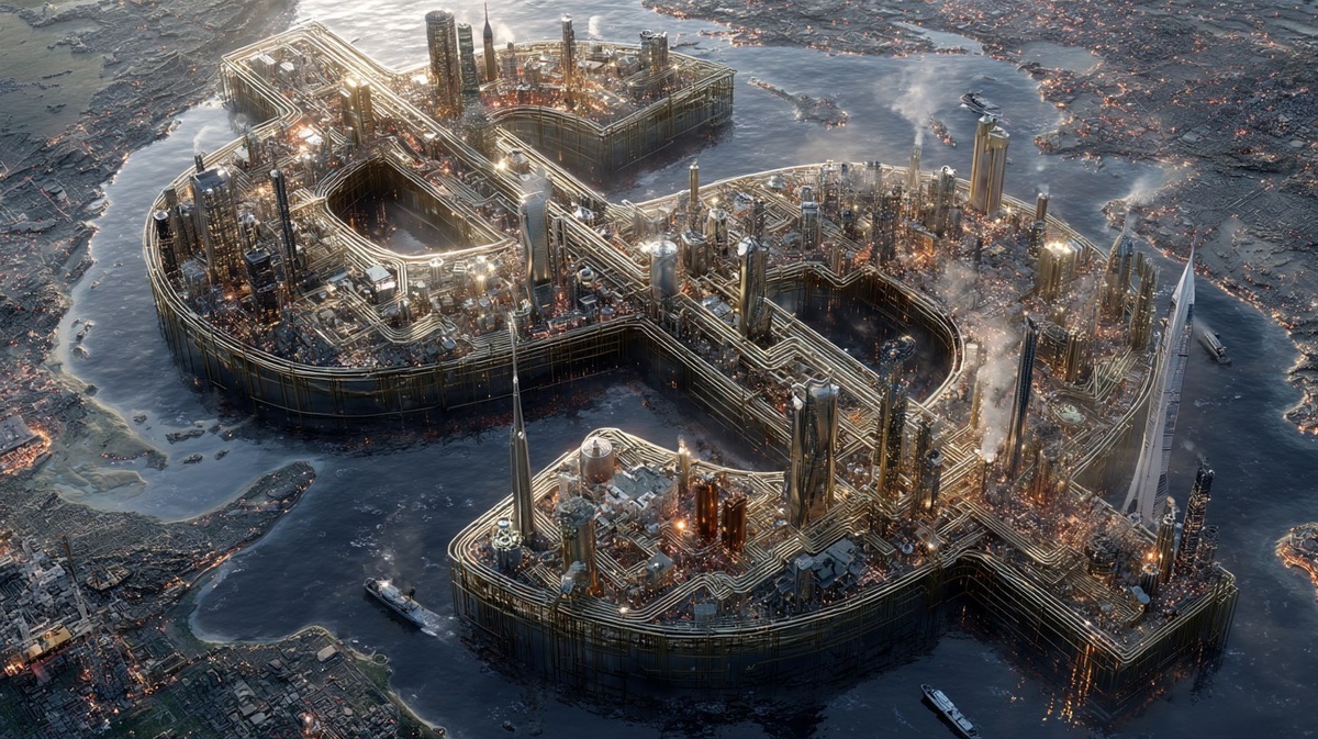 Создано на основе запроса: A highly realistic and cinematic illustration of the Petrodollar system: a giant U