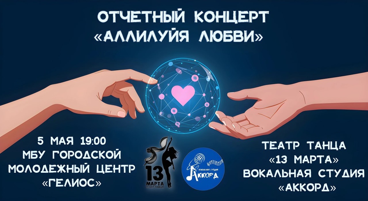 ОТЧЕТНЫЙ КОНЦЕРТ✨ 5 мая 19:00 МБУ Городской молодёжный центр «Гелиос» Приглашаем вас посетить отчетный концерт «Аллилуйя любви» вокальной студии «Аккорд» и театра танца «13 марта». Яркие номера, уникальные аранжировки, эстетичные хореографические постановки, красивая музыка и настоящая феерия творчества. Приходи сам и приводи друзей! Будет интересно! ❤️ КГУ | Подписаться