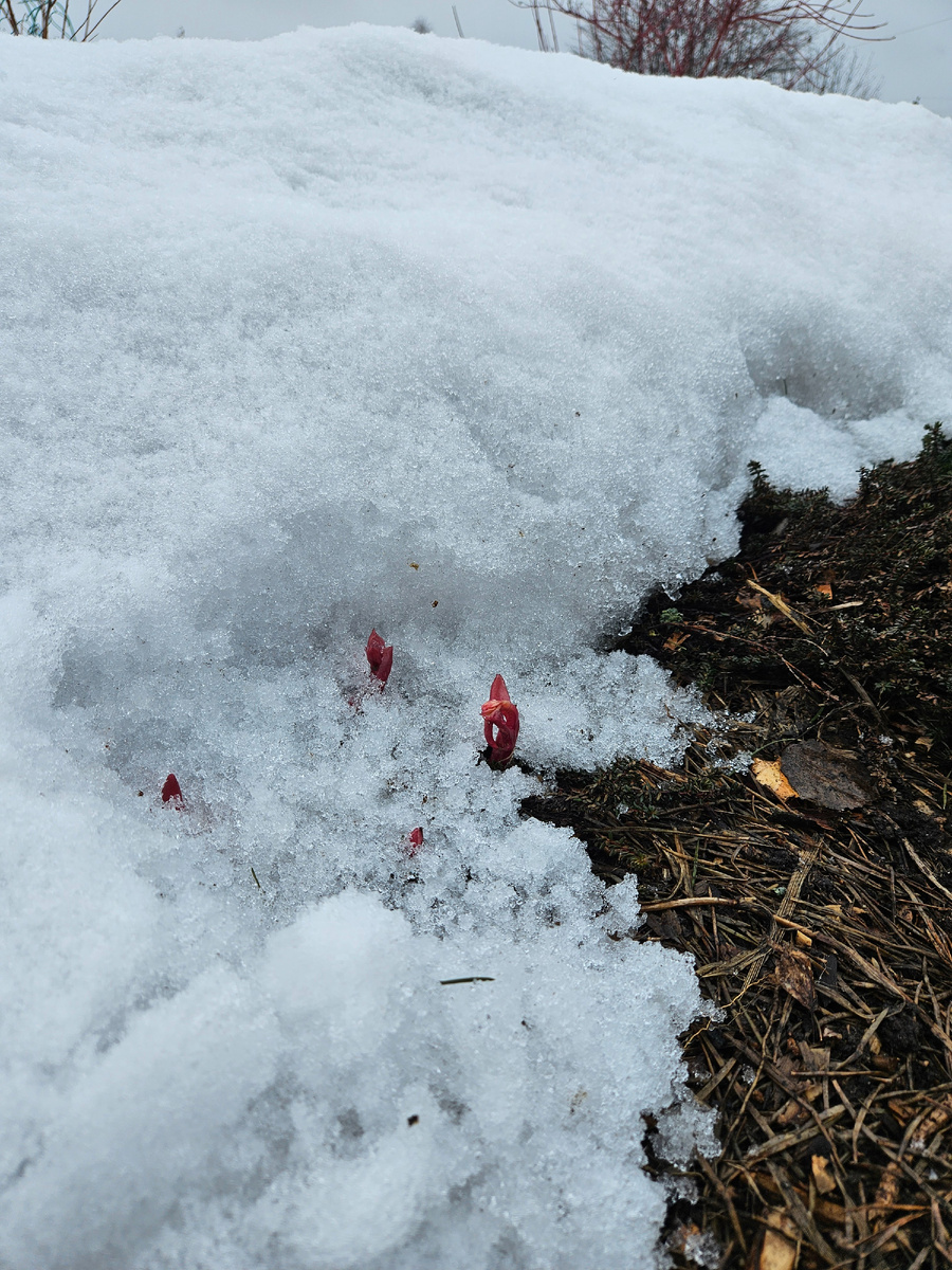 День начался с посадки роз. Нет, не так. С открытия двери и выхода на деревянное крыльцо, с лучей светила за забором в пять утра, когда оно ещё не поднялось над горизонтом, а лишь касалось серого металла, теплом своим ворота нагревая. Дорожка, путь к теплице, стоп. Лезут, лезут из сугроба Пионов красные носы! Начну про розы. В пятницу пришли и долго ждали рук хозяйки, которым было недосуг их на места пристроить, в вёдра. До земли ж не дотянуться. Вновь загвоздка, в теплице партия картона: недавно привезённого, наваленного, не распределённого. Разбор завала - срочно, работать в свалке - нет комфорта. Готово! Таз, земля, ведро с кустами - начинаю. С какой начать? С Императрицы Фарах. В предисловие. Мечта сбылась!!! В который раз? Наверно, в третий? Нет, пожалуй, уже перевалило за четвертую попытку. Императрица Фарах прибыла не в одиночном экземпляре, в составе трио царственных особ. Во фрейлинах японка пребывала, имея в одном посадочном пакете два мощных саженца, один другого краше. Е