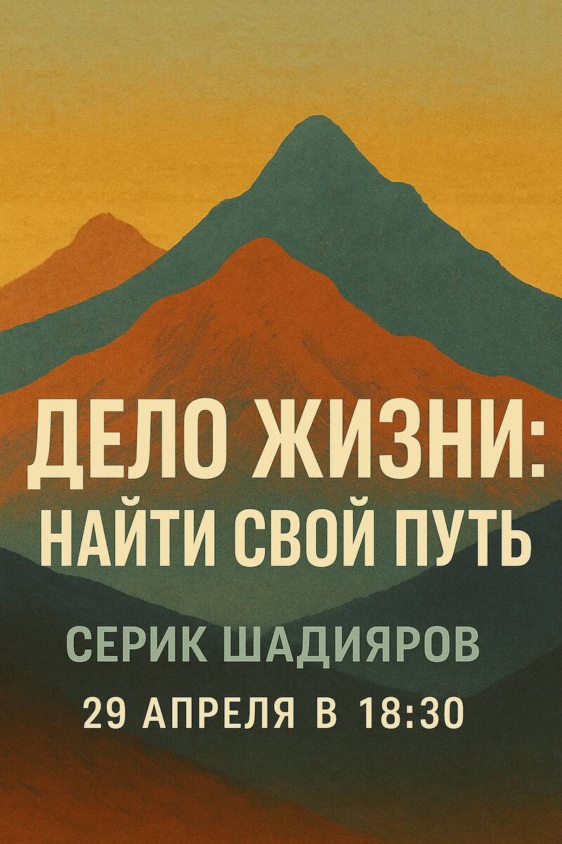Тренинг “Дело Жизни: Найти Свой Путь” Серик Шадияров совместно с Сто Арт 29 апреля в 18:30 Ты чувствуешь, что время идёт, а главное дело твоей жизни всё ещё где-то впереди? Хочется ясности: куда двигаться, чему посвятить свою энергию и как выбрать правильное направление? На тренинге мы поможем тебе: ✅ Определить свои внутренние ценности и приоритеты. ✅ Сформулировать, что для тебя действительно важно. ✅ Выбрать направление деятельности, которое будет вдохновлять, а не выжигать. ✅ Найти свой вектор — не из страха потерять, а из желания создавать. Кому подходит этот тренинг: • Тем, кто стоит на перепутье и ищет своё дело. • Тем, кто уже делает что-то, но чувствует: “это не совсем моё”. • Тем, кто хочет строить свою жизнь осознанно, а не плыть по течению. Адрес: Больничный переулок 6/1 ProStore Главная цель: Помочь тебе найти ту дорогу, по которой ты захочешь идти, даже если на ней будет трудно. Только для мужчин. Стоимость - донат