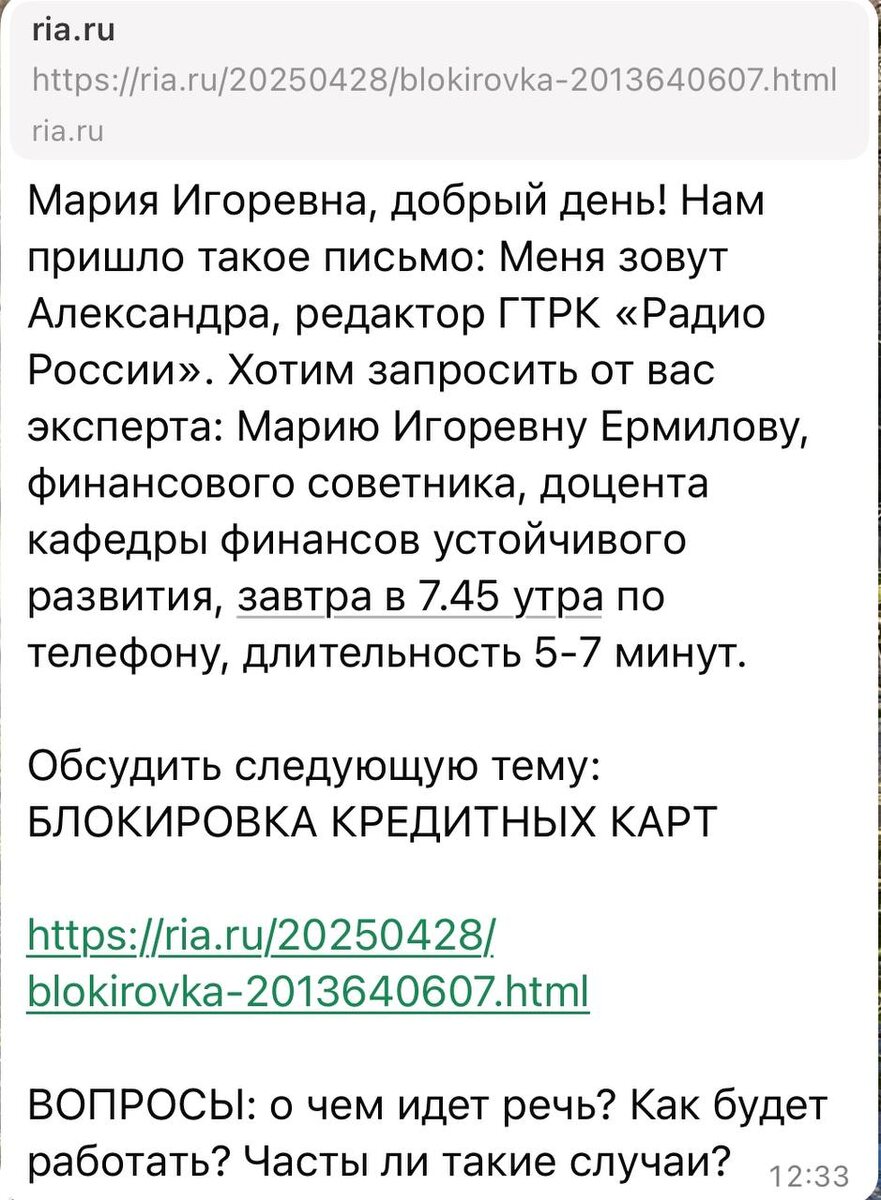Вчера пришел такой запрос и сегодня утром можно было услышать меня на Радио России. Говорили про ограничения по кредиткам. Запись здесь: https://smotrim.ru/audio/2839612