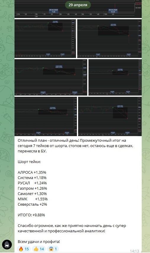 🆘Немного результатов из закрытого ТГ канала. ❗️Сессия по плану. ШОРТ был на 100% обоснован! 💪Хвастаться нужно не своими сделками и даже не своей аналитикой!! А тем как ты эту аналитику доносишь до подписчиков!! ♾НИ ОДИН КАНАЛ НЕ СМОЖЕТ ХВАСТАТЬСЯ ЕЖЕДНЕВНО РЕЗУЛЬТАТАМИ СВОИХ ПОДПИСЧИКОВ!!!! ✅БЕСПЛАТНЫЙ КУРС!!! - НЕ ПЛАТИТЕ ИНФОШЛЮХАМ ЗА КУРСЫ!!!! ✅Отзывы БЕСПЛАТНОГО курса ✅Советую проверенного брокера с оптимальными условиями. - ЛУЧШИЙ ДЛЯ ИНТРАДЕЯ!! ✅Открой счет в ТИНЬКОВЕ и получи БОНУС!!! 🆘 Присоединяйся!!! ТГ канал @LaktionovPrivat_bot - Подписка отбивается за одну сделку!