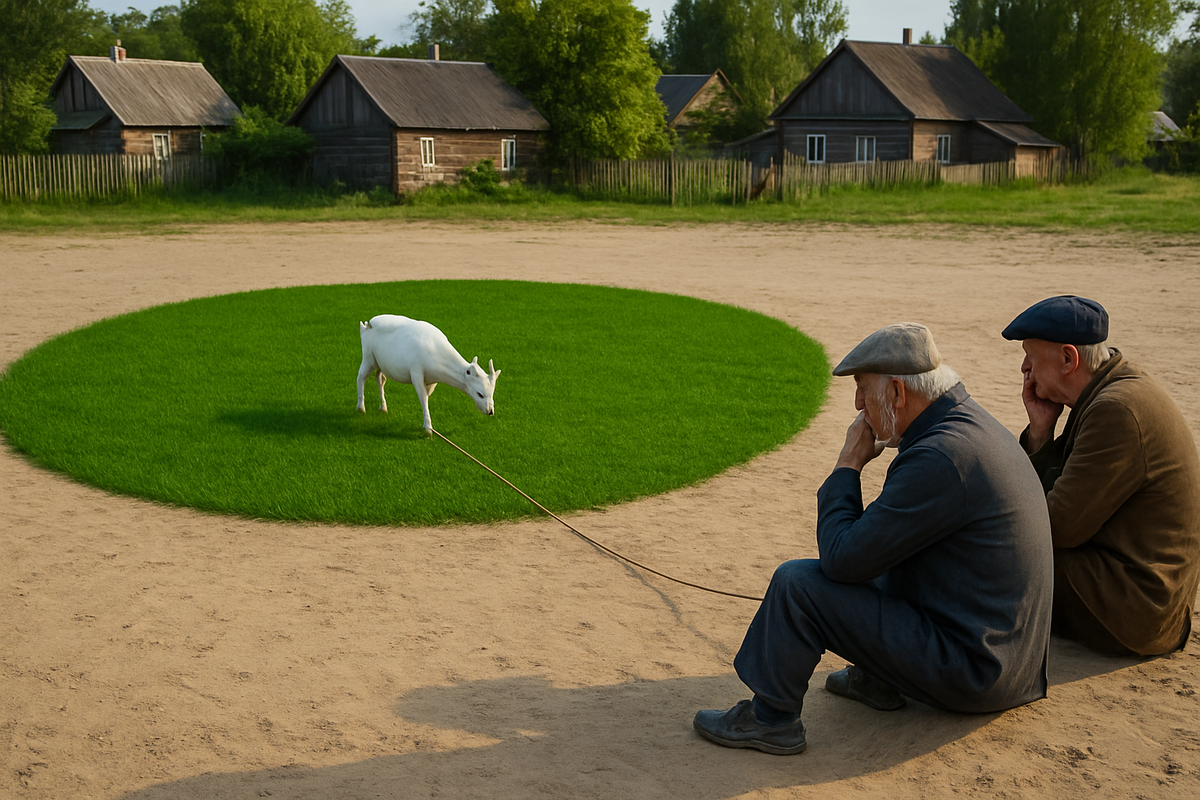 Приветствую Вас! Иногда самая простая на первый взгляд задача способна поставить в тупик даже самых сообразительных. Перед Вами именно такой случай — лёгкая формулировка и серьёзные трудности, когда дело доходит до решения. Итак, внимание: На круглой поляне, огороженной забором, пасётся козёл. Он привязан верёвкой к самому центру этого круга. Вопрос: какой длины должна быть верёвка, чтобы он мог съесть ровно половину всей травы на поляне? Звучит невинно, а вот с решением — не всё так просто. Обычными способами, «по логике» или «на глаз» или с помощью привычных формул и пропорций — не получится. Эта задача по-настоящему удивительная: всё понятно по формулировке, но практически неразрешимо вручную. Поляна — круглая. В центре — колышек, к которому привязан козёл. Его верёвка — это граница свободы. Чем длиннее она, тем больше он может охватить. Но и слишком много нельзя — иначе он съест всю траву. Нужно найти такую длину, чтобы он добрался ровно до половины. Даже опытным исследователям пр