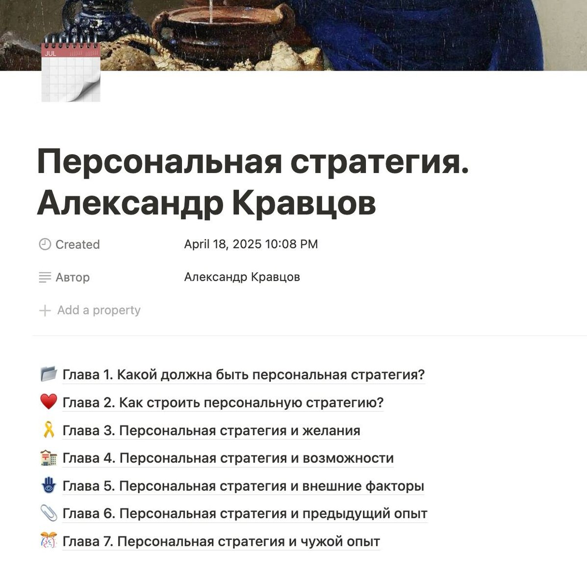 Персональная стратегия. Александр Кравцов Владимир посоветовал мне эту замечательную книгу. Я редко получаю персональные рекомендации. И почти всегда их реализую. Спасибо Володе. Спасибо каждому, кто советует. Сама книга про… стратегию. Да, название не обмануло. Автор четко и последовательно описывает что и как нужно сделать для построения персональной стратегии. А еще Владимир мельком дал взглянуть на свою перс стратегию. Это такой документ, в котором расписан каждый год жизни во всех сферах. Было мощно. Теперь и я составляю свою стратегию на ближайшие 20 лет. Немного из книги: 1. Тактика всегда выходит из возможностей. А стратегия всегда исходит из желаний. 2. Оптимальный срок до мечты — 20 лет. 3. Персональная стратегия должна быть эгоцентричной. 4. Недосып почти эквивалентен алкогольному опьянению. Это очень опасная штука. 5. Мечты, как и хорошее вино — требуют выдержки. 6. Простые желания порождают слабые мечты. 7. Чтобы понять чего я хочу, нужно реализовать пилотный проект. Х