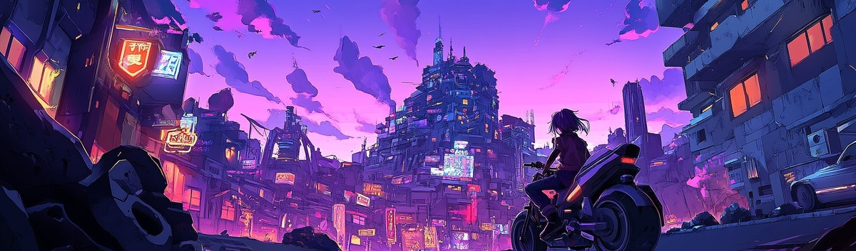 Создано на основе запроса: in the style of anime, a cyber punk city landscape at dusk