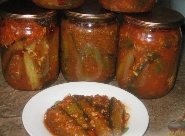 Огурцы в остром томатном соусе.