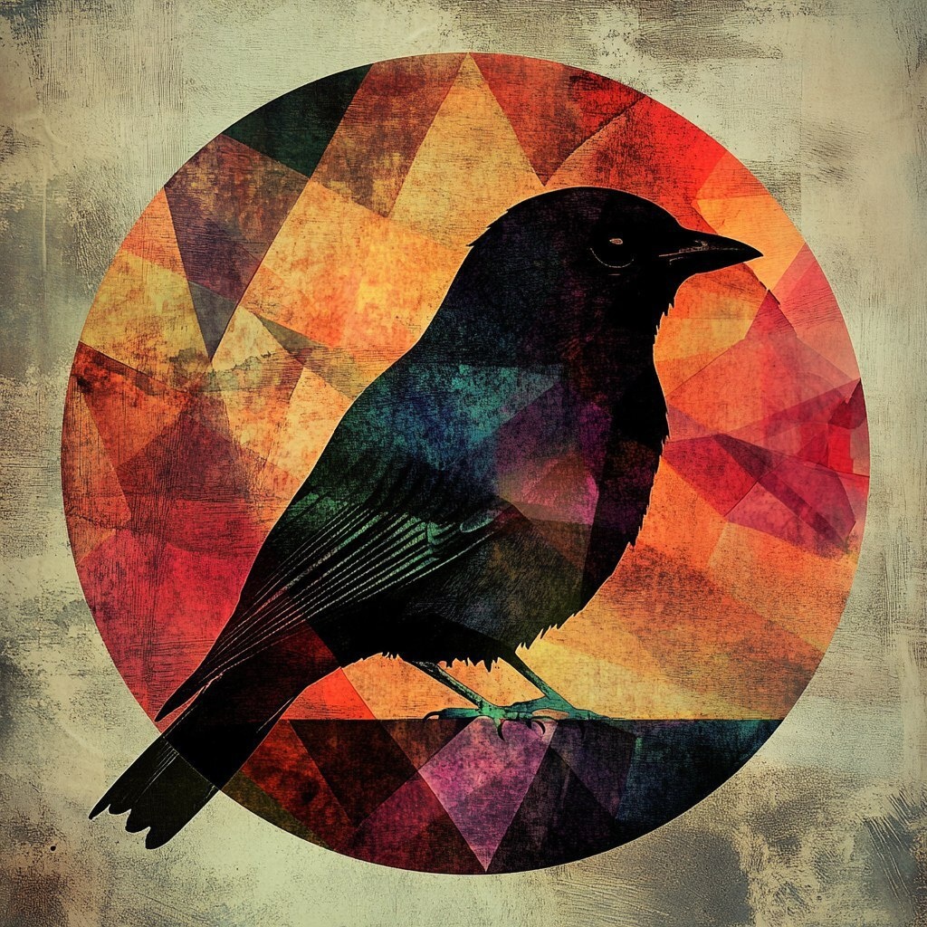Создано на основе запроса: abstract, bird emblem, retro looking, artistic, illusion