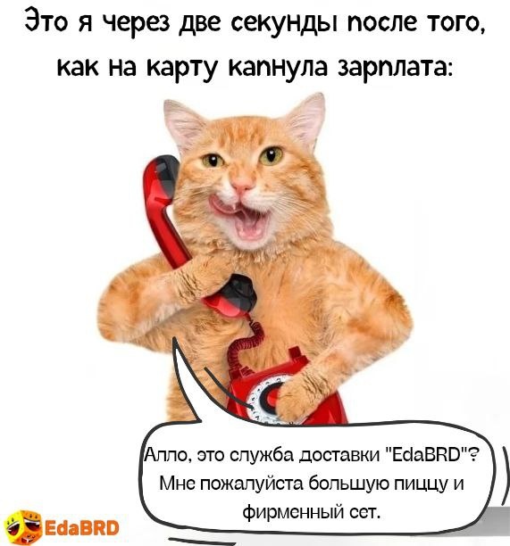 Признайтесь честно, кто-то узнал себя?😏🤪 Психологи 😀рекомендуют регулярно себя поощрять. Это помогает поддерживать мотивацию и предотвращать выгорание. 🙂EdaBRD - это не только служба доставки, но и служба спасения от голода, выгорания и плохого настроения! 👍 Помните, забота о себе – это не эгоизм, это необходимость. Оформите заказ удобным для вас способом: 💬По телефону: +7-990-216-64-58 (+7Телеком) +7-990-183-65-87 (Миртелеком) 🌐Через наш сайт: https://edabrd.uds.app 🔭Телеграм: @edabrd1 МЫ ЖДЁМ ВАС В ГОСТИ❤️ 🗺ул. Дюмина (Итальянская), 50–В (Кафе"Sushi BRD") С 08:00 до 20:00 🗺ул. Кирова (Европейская), 54–Б (Кафе "Диана") С 10:00 до 21:00