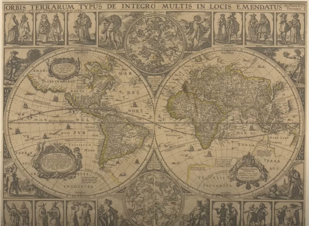Питер Гус, голландский картограф, представил свою карту в Амстердаме. На первый взгляд она может показаться типичной для XVII века: два полушария, небесные сферы, созвездия. Но стоит вглядеться внимательнее — и перед нами возникает совсем иная география мира.