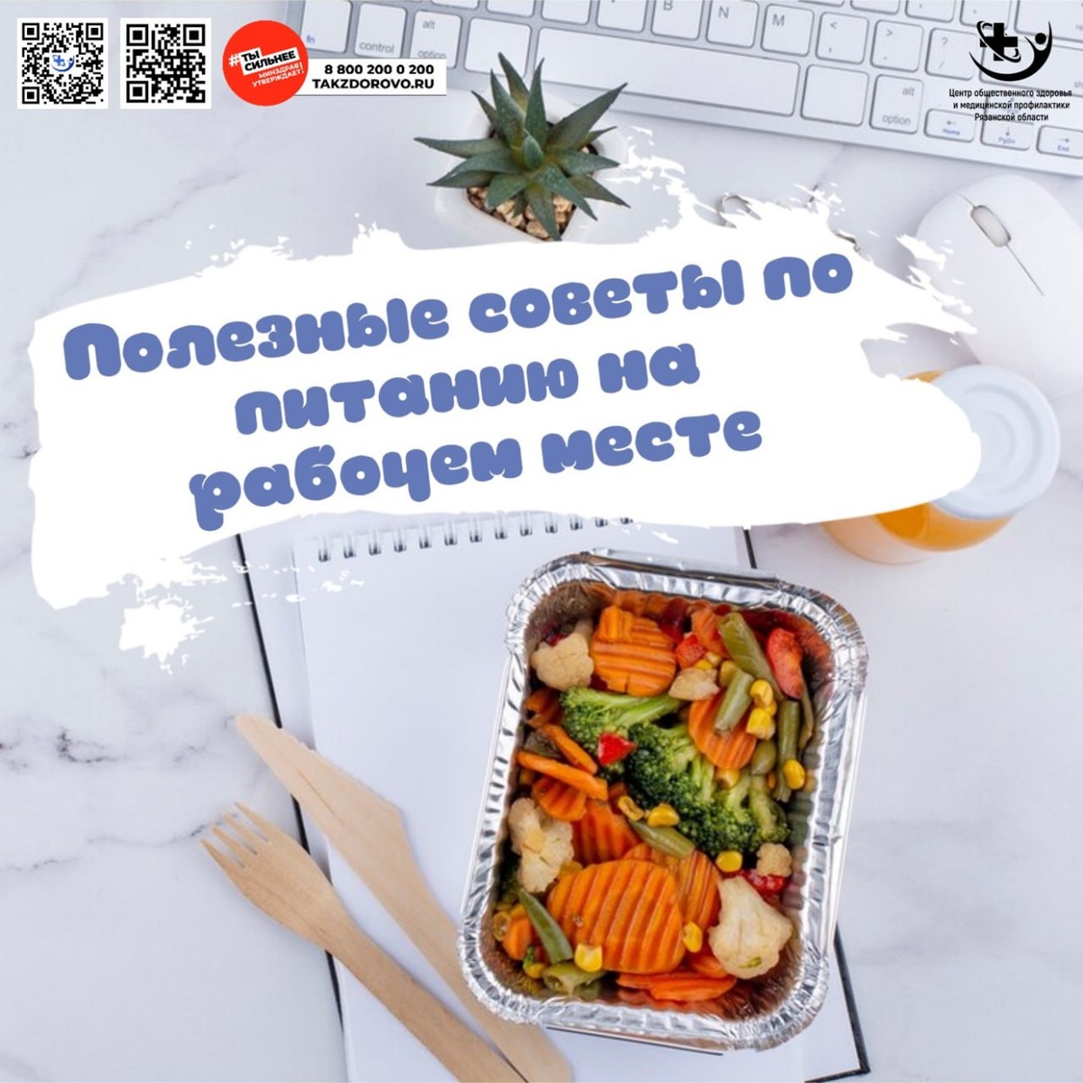 🥑 Правильное питание в течение рабочего дня 🥑 — это не только обеденный перерыв, но и возможность поддерживать здоровье, снижать стресс и повышать работоспособность, инвестируя в себя и свою продуктивность. ✨ Советы по здоровому питанию ✨ 🍏Планируйте питание заранее. Можно составить меню на несколько дней вперёд. 🍏Не пропускайте завтрак. Это важный приём пищи, который даёт заряд энергии и сил на весь день. 🍏Перекусывайте полезными продуктами. Для этого подойдут орехи, фрукты, молочные продукты без сладких наполнителей (йогурт, ряженка, кефир и др.). 🍏Пейте достаточно воды. Важно сформировать привычку пить воду, для этого можно поставить на рабочем месте стакан или бутылку с водой. 🍏Не употребляйте пищу за рабочим столом, в спешке или на ходу. Принимать пищу следует в специально отведённом для этого месте. 🍏Берите в офис еду, приготовленную дома. Это способ сэкономить на обедах в столовых и кафе и снизить потребление фастфуда. #здоровоебудущее #здоровоебудущее62 #ЗдороваяРяза