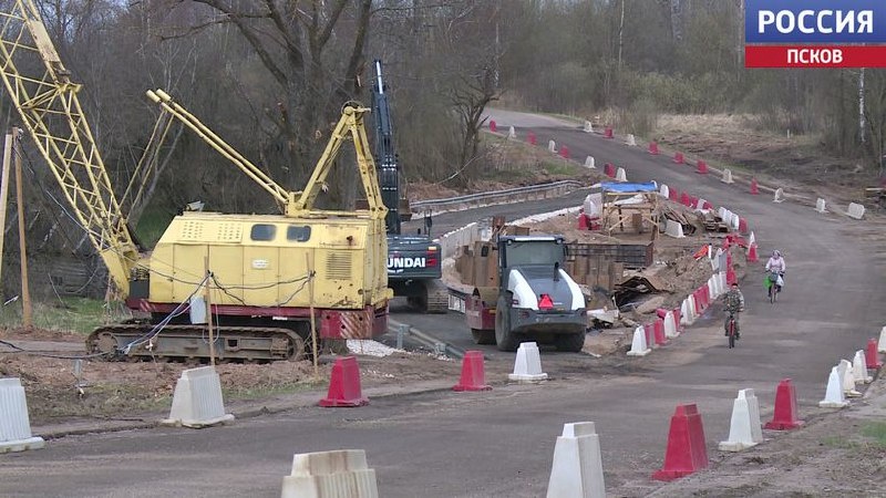 В Новоржевском округе капитально ремонтируют мост через реку Селяха на автодороге "Новоржев-Опочка". Рабочие делают временный объезд, по которому будет направляться транспорт, и начинают работы по демонтажу старого мостового строения.