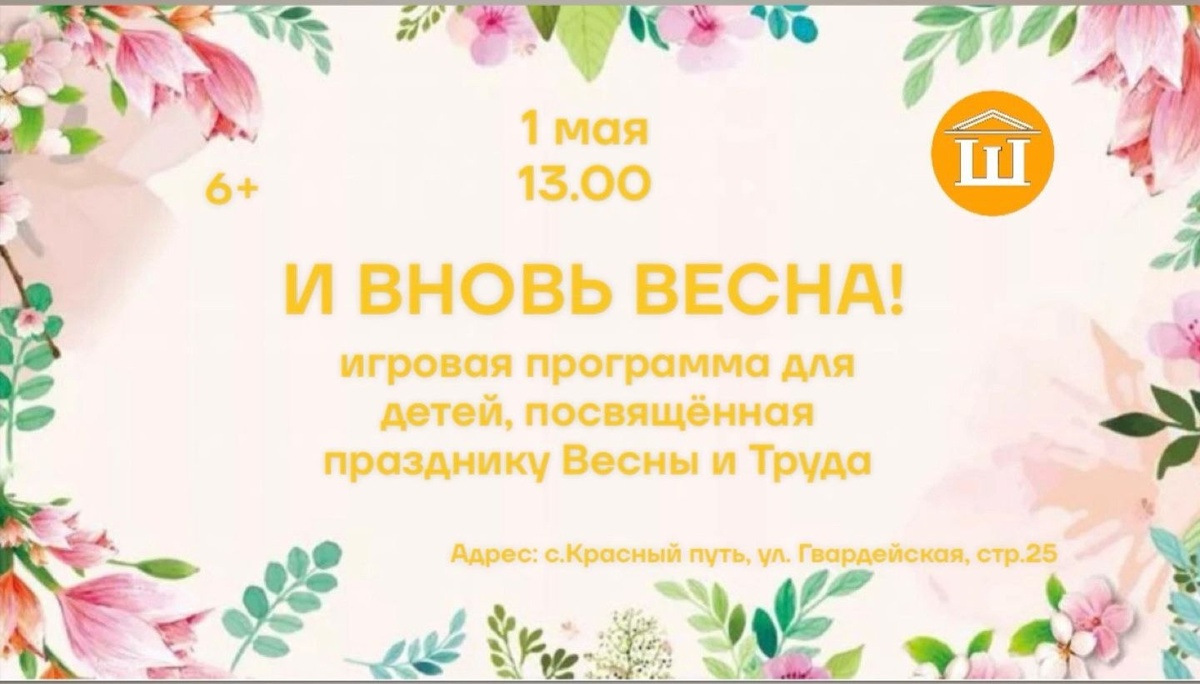 ✨ 🌷 Весна щедро дарит всем свою расцветающую красоту- так поторопитесь радоваться майскому великолепию в праздник Весны и Труда! ☀️ Шаховский СДК приглашает детей на игровую программу "И ВНОВЬ ВЕСНА" 🥳 Встретиться с друзьями, повеселиться и пошуметь в дополнительный выходной день - это лучший способ получить свою порцию весеннего счастья 😊 🚫 Возраст: 6+ 📆 01.05.2025🕒13:00 🏢 Шаховский сельский дом культуры (СДК) 📍 г.о.Домодедово, с.Красный Путь, ул.Гвардейская, д.21 💰 Вход свободный❗️ ✅ Мероприятия Домодедово https://dzen.ru/id/66f10385cc4c5a16f7b5fb02 http://vk.com/domodedovo_events http://dzen.ru/domodedovo_events
