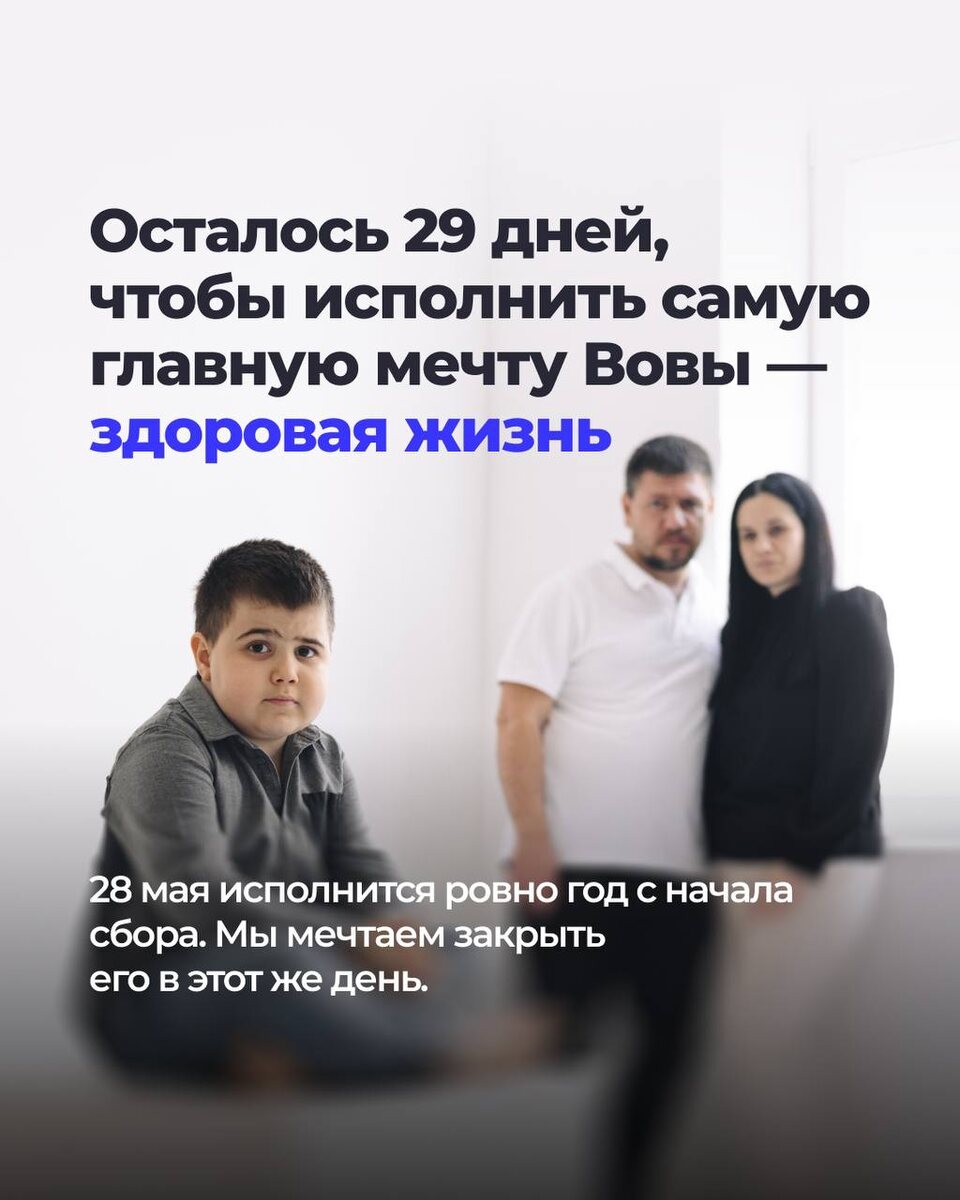 ЭКСТРЕННЫЙ И МАСШТАБНЫЙ СБОР! Я молю Вас сделать рывок и закрыть сбор до 28 мая. В этот день ровно год назад мы открывали сбор, что будет «завтра» не скажет ни один врач и если не успеть, Вова окажется в инвалидном кресле, а дальше летальный исход. ⏳29 дней 👥217 578 человек по 500 руб 🚨 или любая посильная сумма Сейчас на счету каждый день. Вова Соловьев, 8 лет, Диагноз: Миодистрофия Дюшенна. Все документы, фонды и перевод с зарубежных карт по ссылке в описание @savevova2024 Сумма сбора: 262 000 000руб. Осталось собрать: 108 788 565руб. НАМ НУЖНА ПОДДЕРЖКА ЛЮДЕЙ!Отправьте это видео своему другу, выставите в статусы WhatsApp и телеграмм. Реквизиты: Перевод по номеру тел.+7(918)499-99-81 Заира Масхудовна С. (Мама) В комментариях к платежу: Вове на лечение.