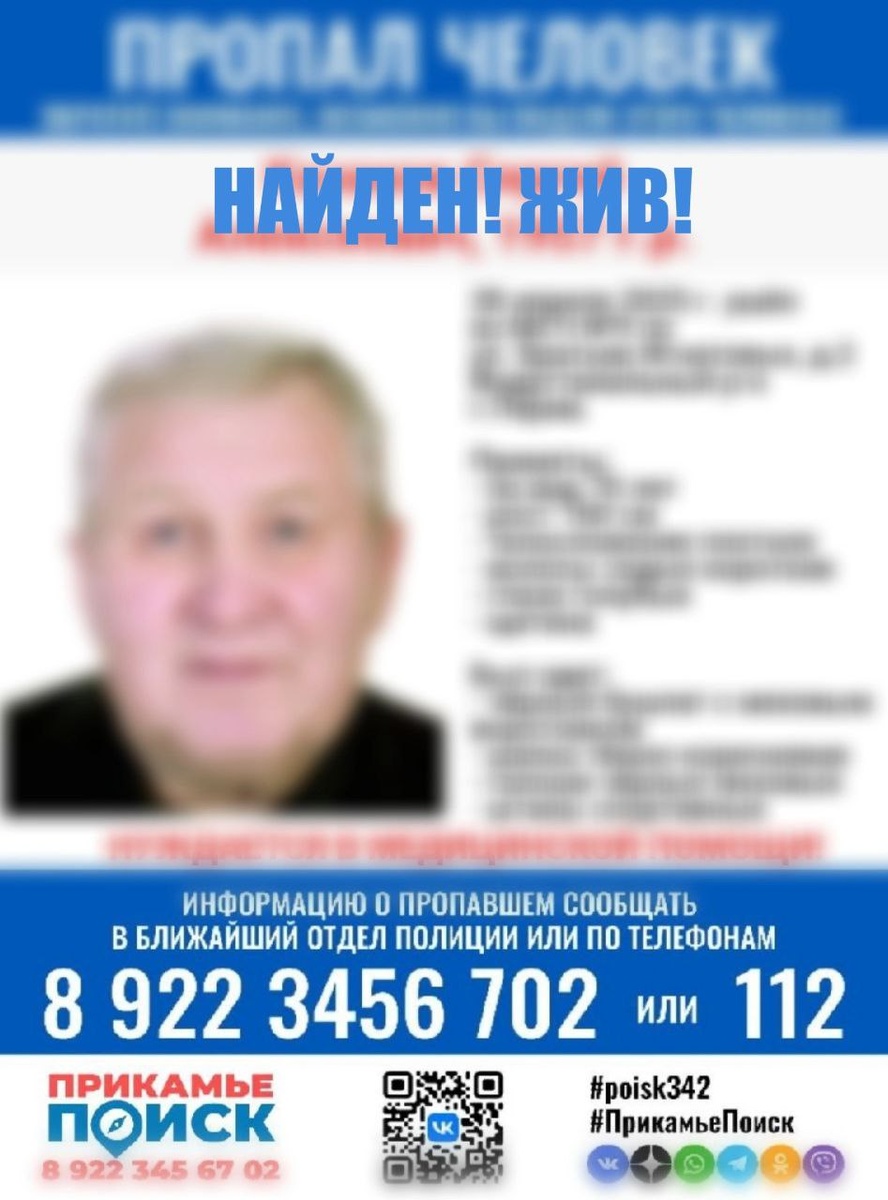 UPD: НАЙДЕН! ЖИВ! ❗ПРОПАЛ❗ КАЗАКОВ СЕРГЕЙ АЛЕКСЕЕВИЧ, 1957 г.р. 28 апреля 2025 г. ушёл из МСЧ № 9 по ул. Братьев Игнатовых, д.2 Индустриальный р-н, г. Пермь. НУЖДАЕТСЯ В МЕДИЦИНСКОЙ ПОМОЩИ! Если вам что-либо известно о пропавшем человеке, просьба сообщить по телефонам: 8 922 34567 02 или 112 #ПрикамьеПоиск #poisk342