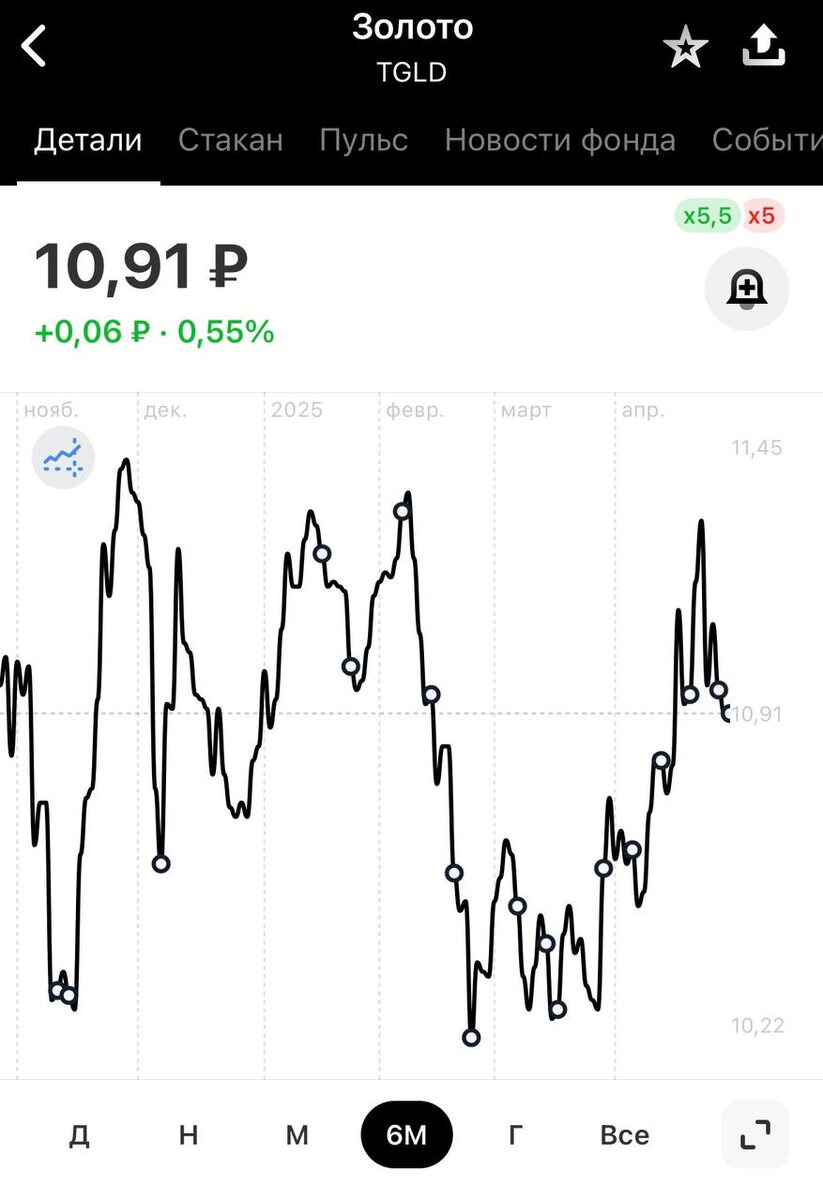 Продолжаю еженедельно докупать #фонд $TGLD на #ИИС , чтобы довести долю до планируемых 10