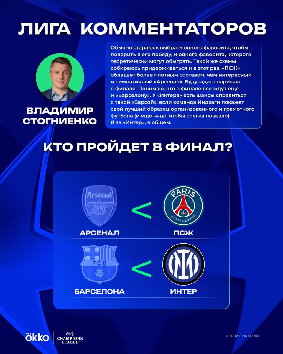 А Владимир Стогниенко верит в «Интер»! ⚽️ Он считает, что миланцы могут пройти «Барсу», если сыграют организованно и грамотно. И еще надо, чтобы им слегка повезло 👍