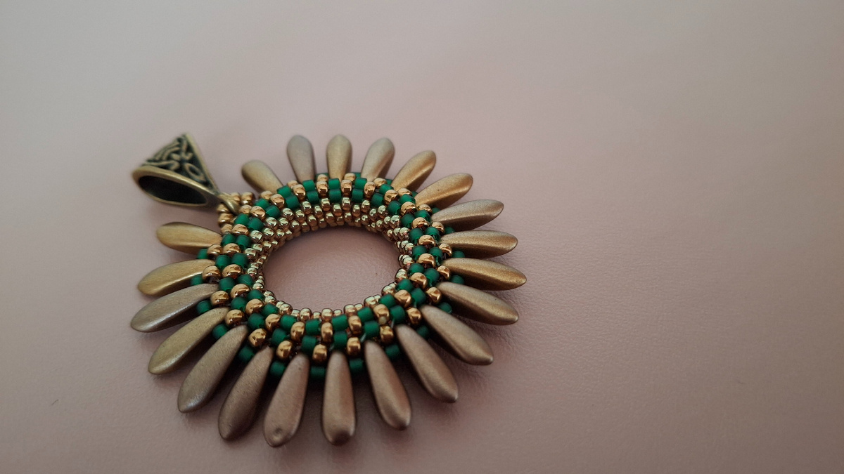 Друзья, сплела подвеску из чешских бусин Dagger beads 11x3, получается красиво и плетется просто