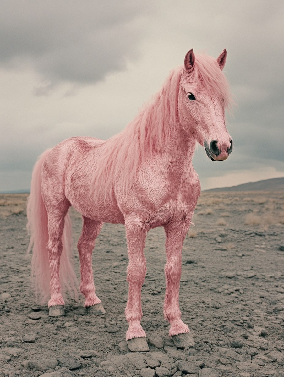 Создано на основе запроса: dynamic ultra close-up, 90s style Balenciaga Editorial photo of a real horse with pink glossy metallic long fur, background is a empty lonely stone like desert, cloudy overcast sky, muted and light color palette, bold and grotesque composition, hyperrealistic yet slightly dreamlike, retro-futuristic, inspired by Martin Parr, --- Автоперевод: Динамический Ultra Cloe-up, редакционная фотография Balenciaga в стиле 90-х годов с настоящей лошадью с розовым глянцевым металлическим мехом, фон-это пустой одинокий камень, такой как пустынный, облачное пасмурное небо, приглушенное и светло-цветовое, жирное и гротескное состав, гиперреалистичный, но слегка сказочный, ретро-фатуризм, вдохновленный Мартин Парр, Гтесу Интересно вышло? 🤔 https://dzen.ru/id/65c0c65c86e4f837c27b24d7 #ИИ #AI #нейросеть #midjourney #art