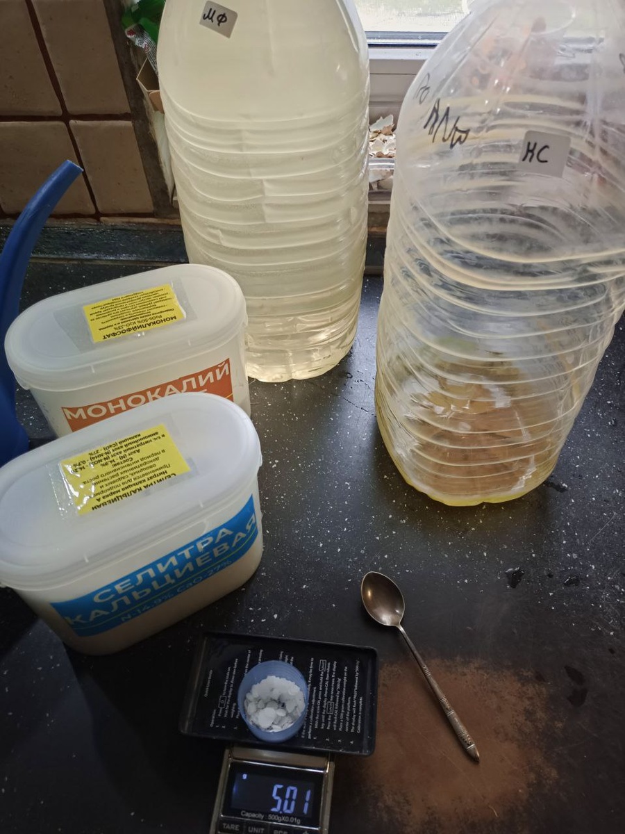 Посему подготавливаю ещё один раствор. Подкормка «фаза I». Кальциевая селитра (1г/1л воды). Нужна для мощного старта.