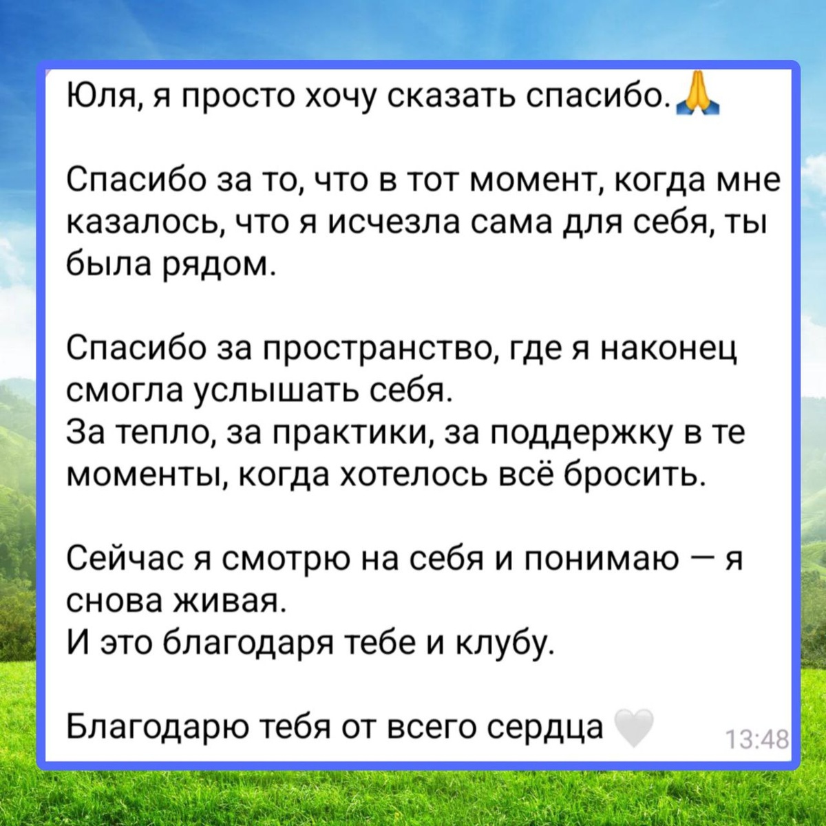 Как одиночество стало для Анны началом новой жизни ❤️ 👉 Анна пришла ко мне в состоянии, которое знакомо многим... "Я не просто одна. Я не чувствую смысла вставать с утра. Я смотрю в потолок — и всё кажется чужим. Я как будто исчезла сама для себя." Её одиночество было не про отсутствие людей рядом. А про потерю связи с самой собой. 🔹 Анна записалась в Клуб не потому, что верила в "чудо". А потому что хотела — хоть маленькую искорку тепла. Хоть один уголок пространства, где можно быть собой. Что мы начали делать: ✔Мягкие энергетические практики на возвращение в тело ✔Потоковые медитации на принятие своих чувств ✔Дневники: честные записи без цензуры ✔Разбор, где она теряла себя в отношениях и "обязанностях" ✨ И постепенно начали происходить маленькие, но важные изменения: Анна впервые за долгое время почувствовала: я живая!!!🔥 Начала выбирать — людей, дела, даже слова — через вопрос: 👉 "Это про меня? Это наполняет меня?" Одиночество перестало быть страшной дырой. Оно ста